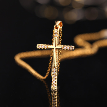 Colgante de Cruz de circonia cúbica de alta calidad, collar de clavícula con diamante completo, Cruz de Latón chapado en oro